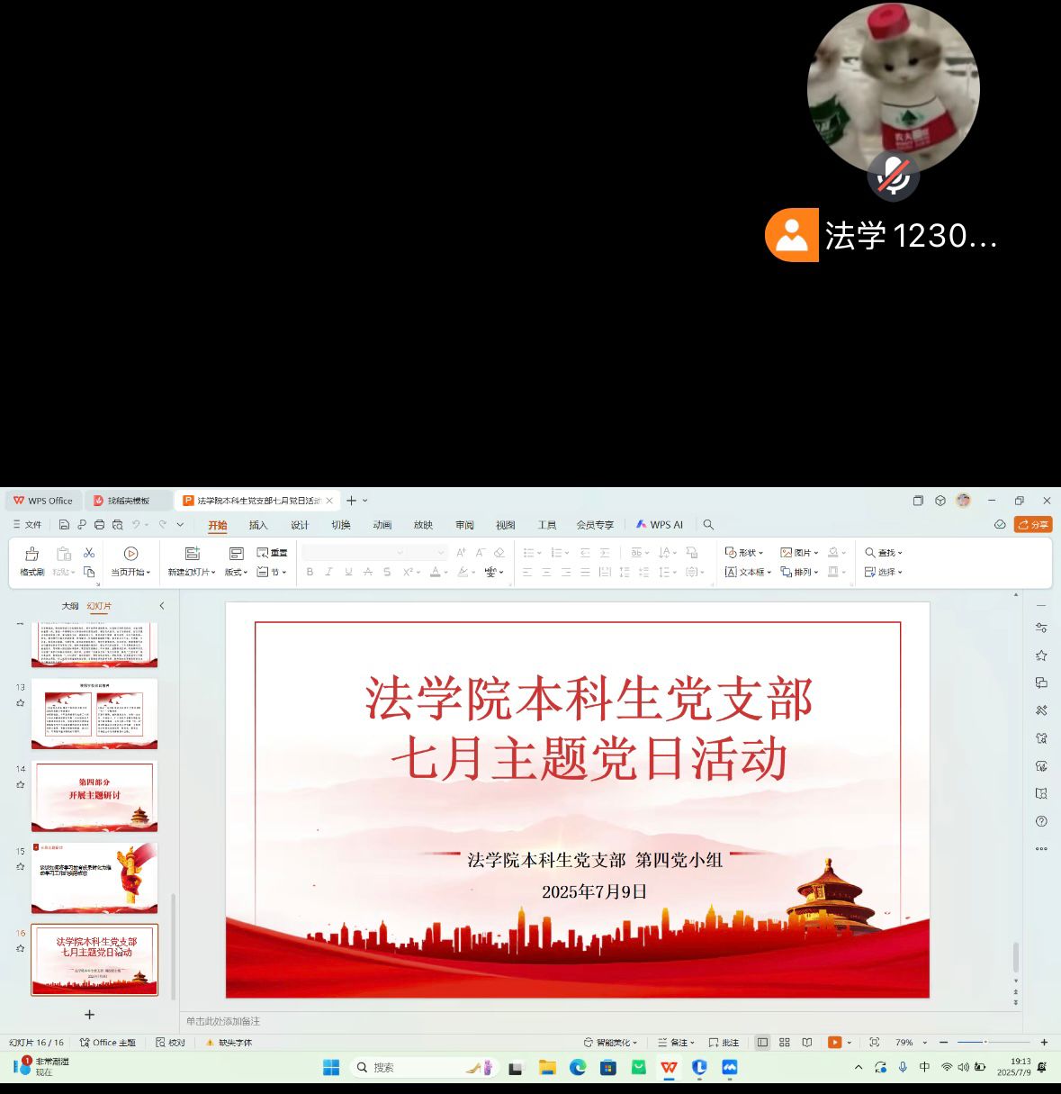 (通讯员 肖芳)为深入学习贯彻党的最新精神,加强党员思想政治教育,提升党组织的凝聚力与战斗力,williamhill中文研究生党支部于7月10日19::00通过线上方式举办了七月主题党日活动。活动伊始,在田博文同志的带领下,全体党员重温入党誓词,铿锵有力的誓言在线上回荡,通过网络传递到每一位党员的心中。重温入党誓词,让党员们回顾起入党时的初心与使命,进一步坚定了理想信念,增强了作为一名共产党员的责任感与使命感。随后进入理论...