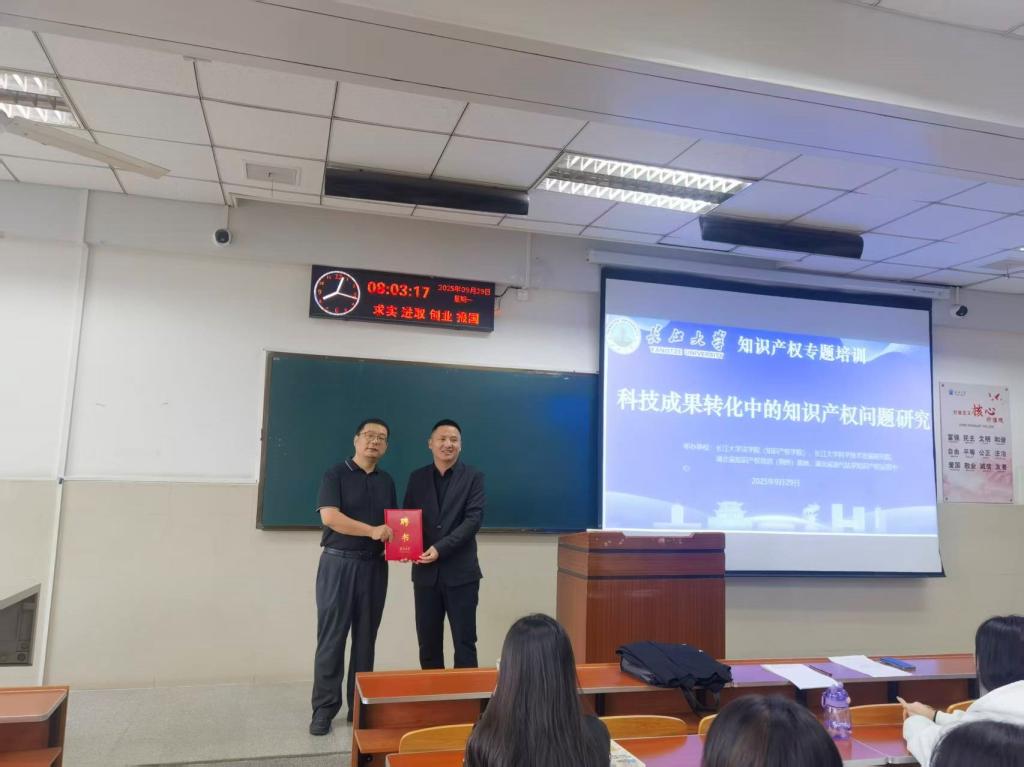 (通讯员 胡骑兵)9月29日上午,williamhill中文2025年度第五场学术讲座——“科技成果转化中的知识产权问题”在12教403教室成功举行。讲座特邀中南财经政法大学知名专家何华教授担任主讲,校科学技术发展研究院副院长郝勇、williamhill中文副教授胡骑兵出席,williamhill中文全体研究生及法律专业本科生参加。讲座由williamhill中文院长李华成主持。郝勇在欢迎辞中介绍了何华教授的学术成就,并强调了本次讲座对于推动学校科技创新与成果转化的重要意义。随...