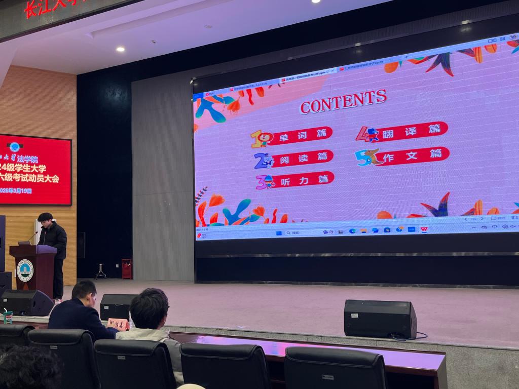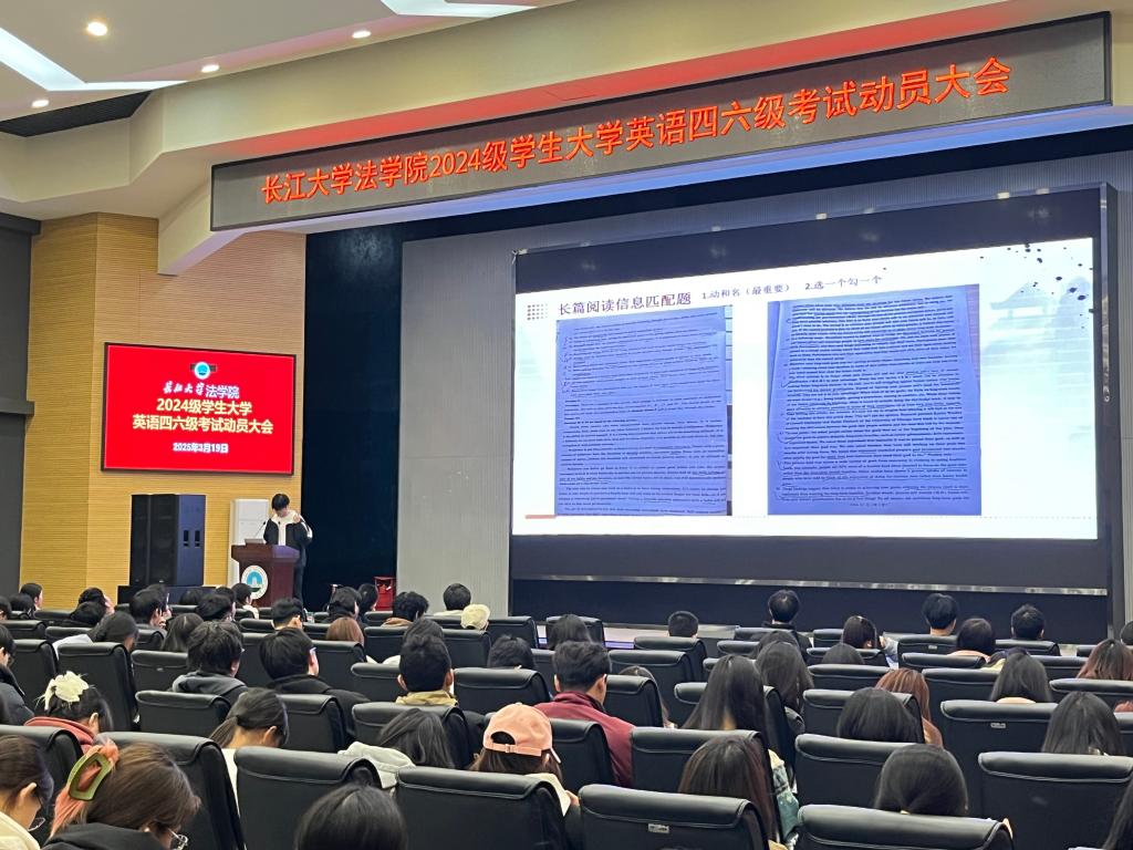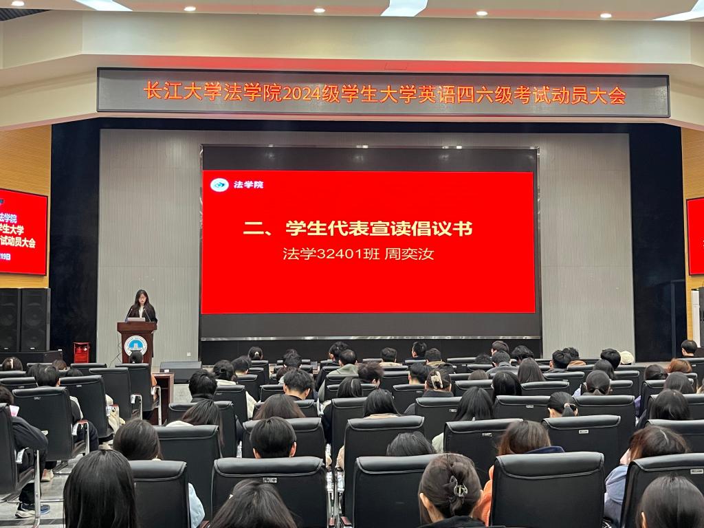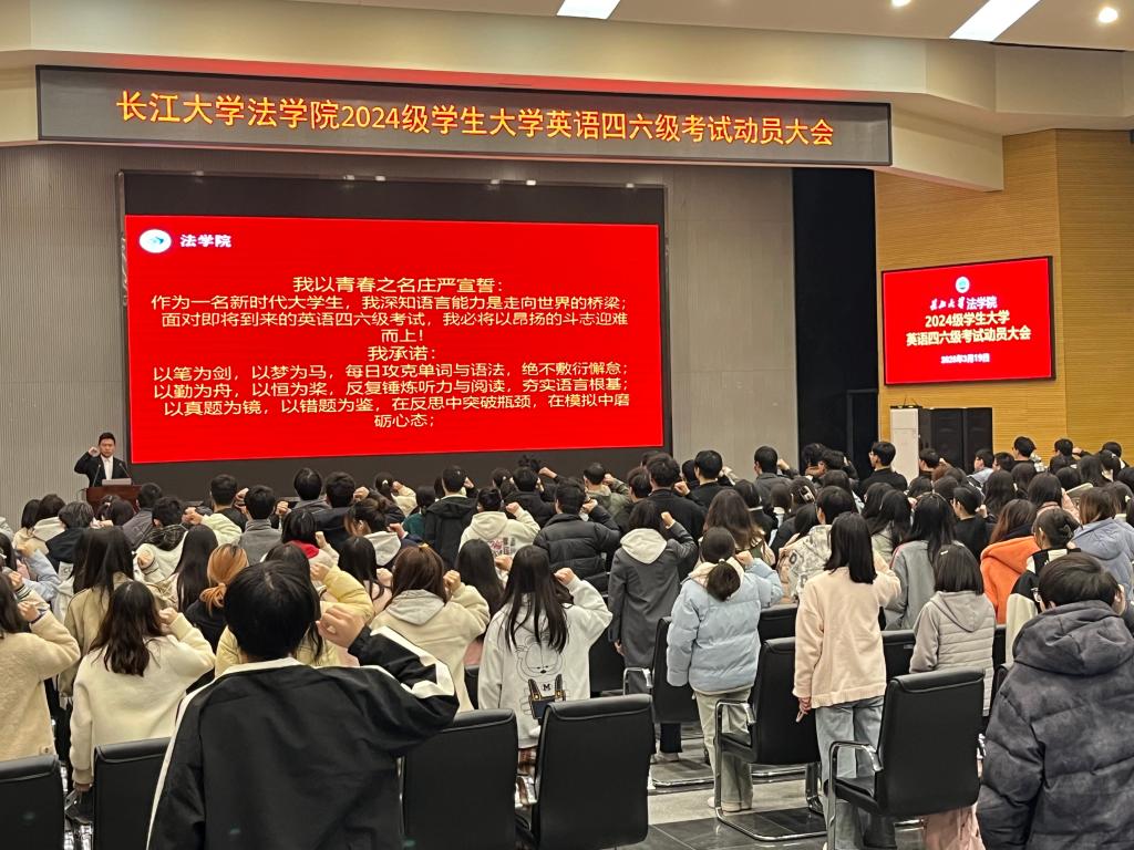 (通讯员 向若涵)3月19日,williamhill中文在西校区农科大楼1058学术报告厅召开大学英语四六级考试动员大会,2024级全体学生参加会议。大会以“明法致公强根基,语通世界展锋芒”为主题,通过学生榜样经验分享、集体宣誓、领导动员等环节,点燃了学子们的备考热情,为即将迎战四六级考试的全体学生注入了强大精神动力。