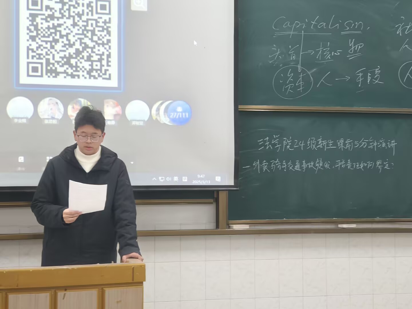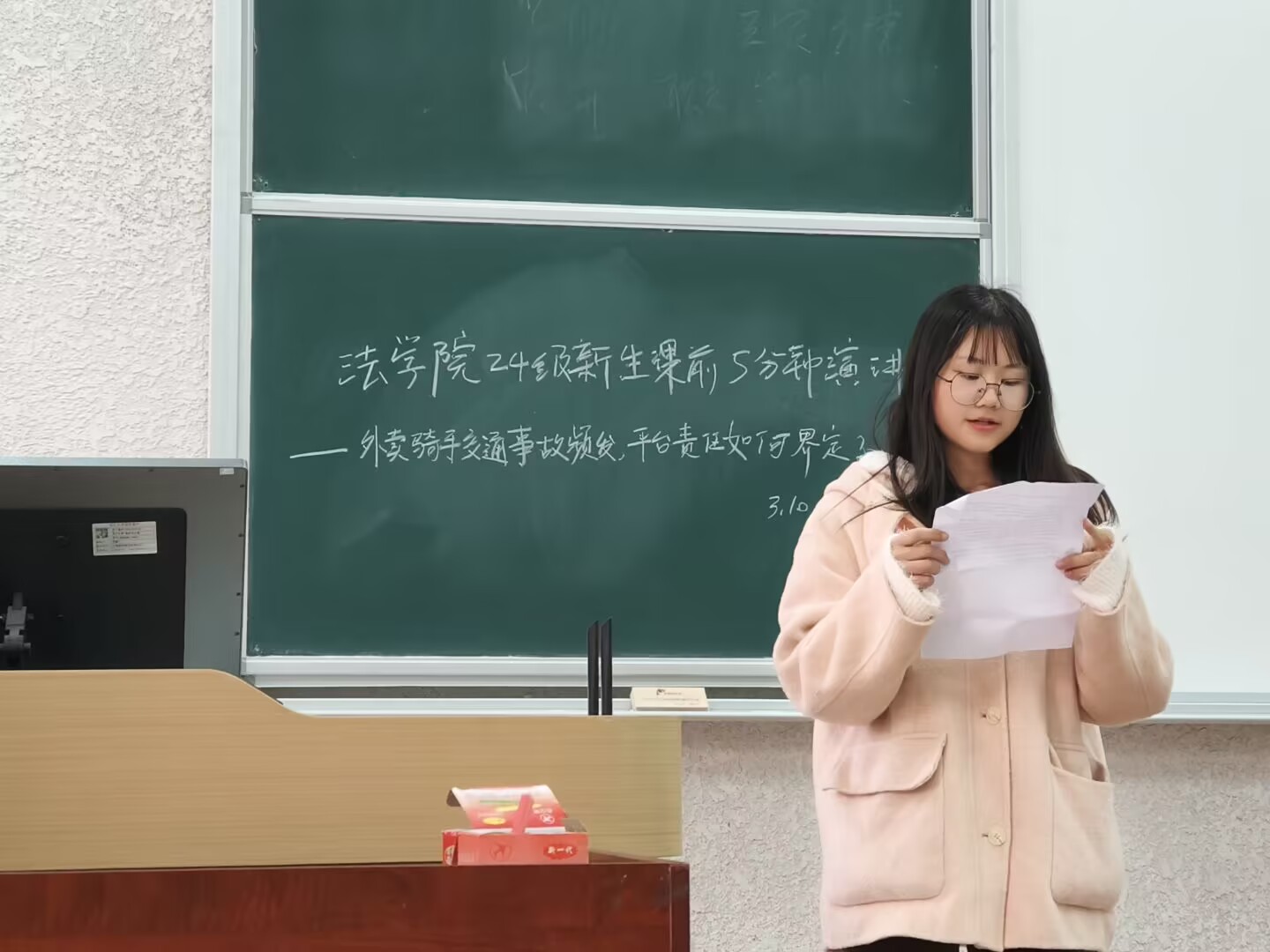 (通讯员李剑)3月10日至14日,williamhill中文在春季学期第四周开展了课前5分钟演讲活动,本次活动聚焦 “外卖骑手交通事故频发,平台责任如何界定?”这一热点话题,旨在引导williamhill中文学子运用专业知识,深入思考社会现实问题,提升法律分析能力。