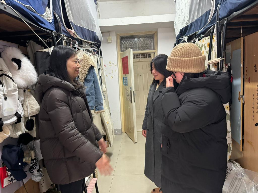针对新生寝室,老师们重点了解学生的适应情况。“经过一个学期的相处,寝室同学们的关系怎么样。”辅导员细心询问,并提醒新生们注意寝室安全、谨防诈骗,同时积极参与校园活动、劳动教育。不少学生表示,开学第一天便感受到学院的温暖,对新学期充满信心。