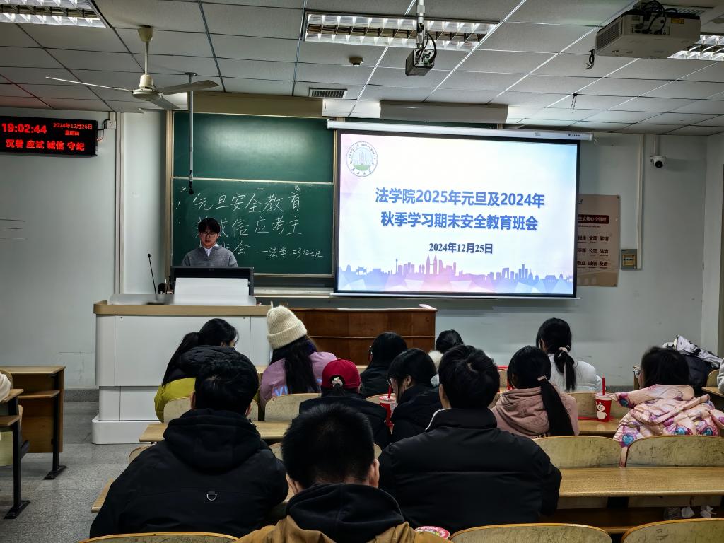 (通讯员 姚水根)随着元旦佳节的临近,2024年秋季学期的帷幕也悄然步入尾声。为保障学生安全,安稳过元旦,williamhill中文于2024年12月25日成功召开了2025年元旦假期及2024年秋季学期期末安全教育班会。