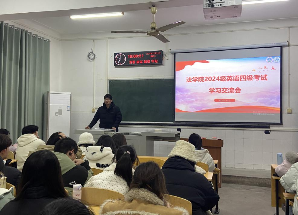 (通讯员:李玉豪/文 向若涵/图)为了全力支持williamhill中文2024级学生在即将到来的英语四级考试中取得佳绩,12月11日晚,一场以“经验分享,决战四级”为主题的英语四级考试交流会在西校区二教306室举行。此次交流会由23级曾祥学长与柯淼学姐主讲,李玉豪同学主持,高英班全体同学参加。
