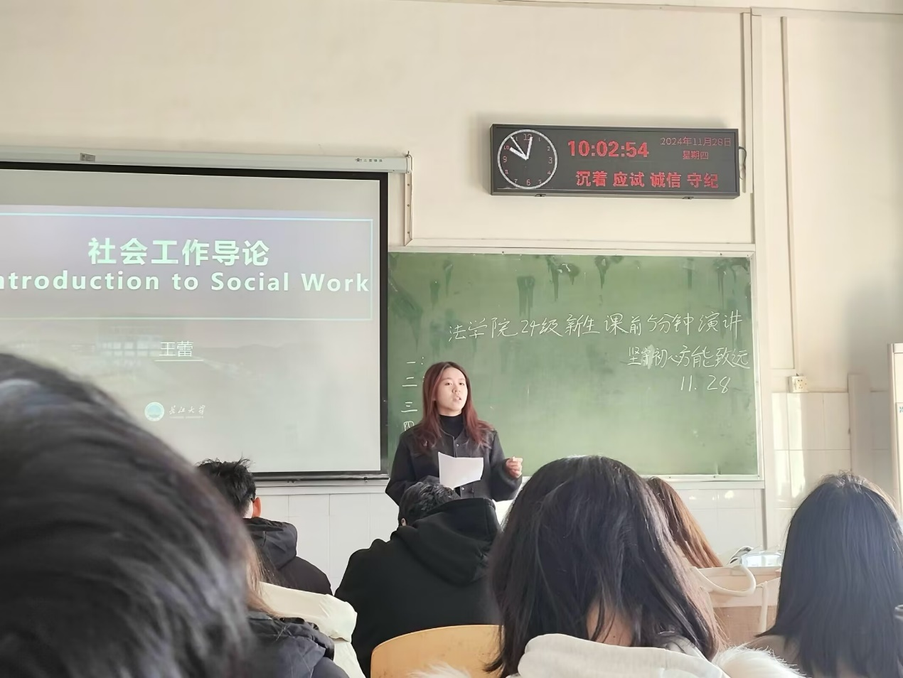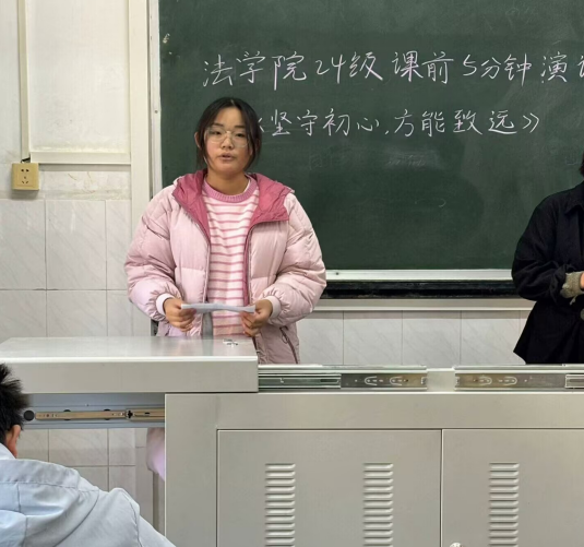 (通讯员:成艺)在2024年11月25日至12月1日这一周里,williamhill中文2024级新生共同见证了一场意义非凡的盛会,以“坚守初心,方能致远”为主题的课前五分钟演讲活动圆满举行。此次活动旨在点燃青年学子心中的理想之火,激励他们在漫长的求知旅途中,怀揣信念,勇往直前,探索并实现自我价值。