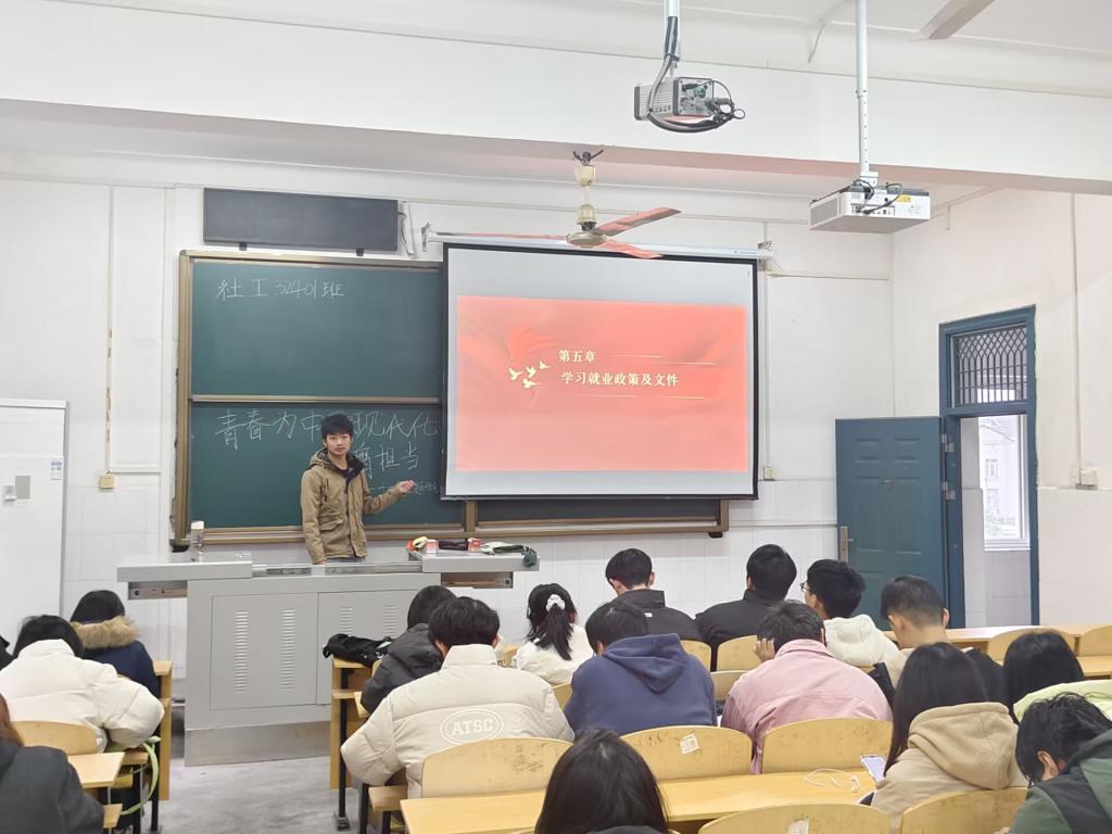 本次主题团日活动重点学习习近平总书记给中国国际大学生创新比赛参赛学生代表的回信精神,通过线下开展团会、集中交流讨论等形式,鼓励我院学子树立创新意识、创新精神,善于挖掘自己的潜能,注重学习活动的创造性;学习习近平总书记在湖北考察时重要讲话精神,教导青年要鼓足干劲、奋发进取,久久为功、善作善成,助推奋力谱写中国式现代化湖北篇章的新征程;学习习近平总书记关于促进高质量充分就业的重要讲话精神,为同学们的就业政策提供方案指导与精神引领;学习《网络数据安全管理条例》,培养我院学子对网络数据安全的防范意识,合理运用网络数据安全的法治保护屏障;学习就业政策及文件,了解法学、社会工作专业相关就业情况,为学生就业方向提供具体指导。