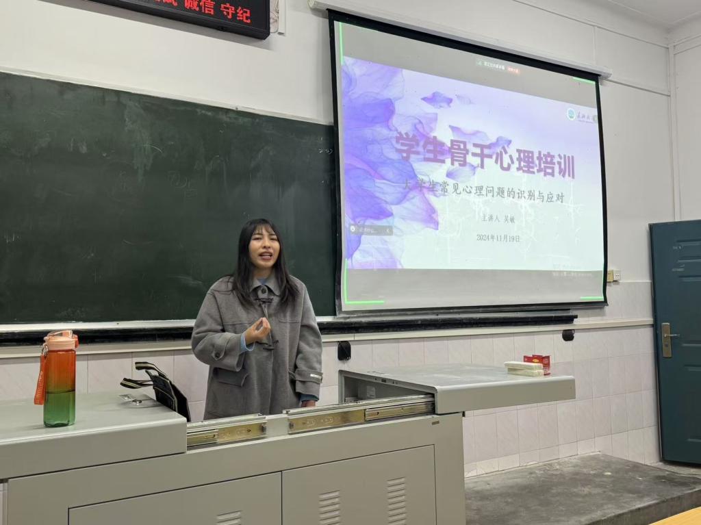 (通讯员杨翔茹邹妮彤/摄杨雅淇/文)为进一步深化同学们对心理健康教育的认知,激活校园危机预警与干预网络,不断提升新生骨干的自助与助人水平,明晰我校心理健康咨询流程。williamhill中文于2024年11月19日晚,在西校区2教108教室开展2024年秋季学期新生骨干心理健康教育培训。此次培训由williamhill中文心理专干吴敏老师主讲,2024级全体班委参会。