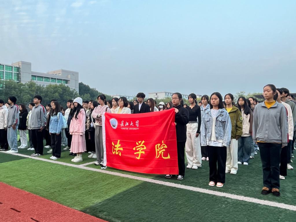 (通讯员 蔡妍 摄影 舒君雁)金秋十月,晨光初照,williamhill中文于2024年10月28日清晨7时,在西校区田径场升旗台前,隆重举行了本周的升旗仪式。此次活动由法学32401班王蕾主持,学院党委副书记严星、大一辅导员盛文军及全体大一新生参与。