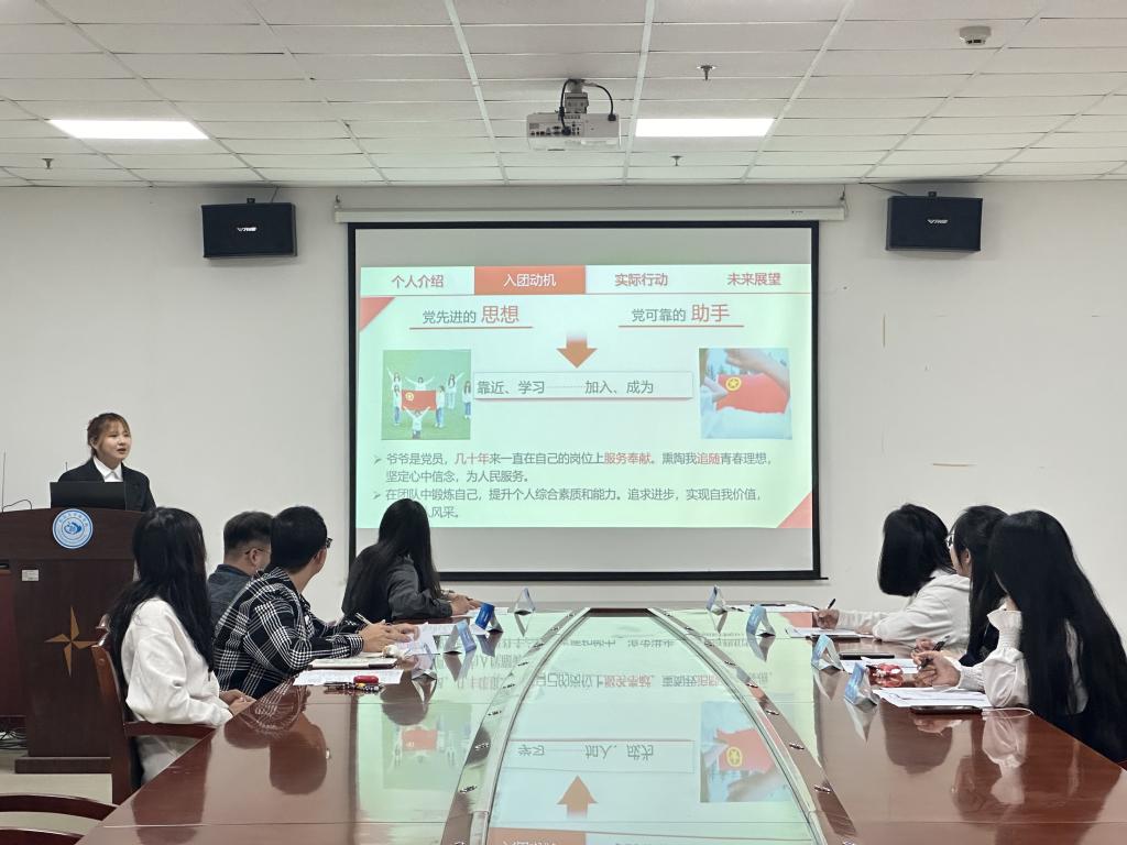 入团积极分子们分别从自我介绍、入团动机、对团组织的认识、个人经历以及未来规划五个方面进行陈述,纷纷表达出积极向团组织靠拢的决心。评委们立足实际,结合习近平新时代中国特色社会主义思想和中国共产主义青年团的基本知识,客观公平地进行了提问和点评,并有针对性地提出发展建议,加深了同学们对团的认识,同时传达了作为团员应尽的职责与担当。