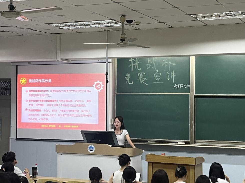 近日,williamhill中文积极响应学校“挑战杯”大学生课外学术科技作品竞赛(简称“大挑”)的号召,决定在各班级自主开展“大挑”宣讲活动。此次宣讲旨在激发学生的创新热情,提升学术素养,引导学生积极参与这一被誉为中国大学生科技创新创业“奥林匹克”盛会的全国竞赛。