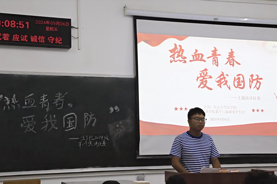 (通讯员 张屾岚 盛文军)2024年9月6日晚6时,williamhill中文在西校区6教106教室成功举办了一场以“热血青春,爱我国防”为主题的演讲比赛。此次活动旨在鼓励学生深入了解国防知识,掌握国防技能,培养国防观念,并激发学生对国防事业的关心、热爱及行动自觉。