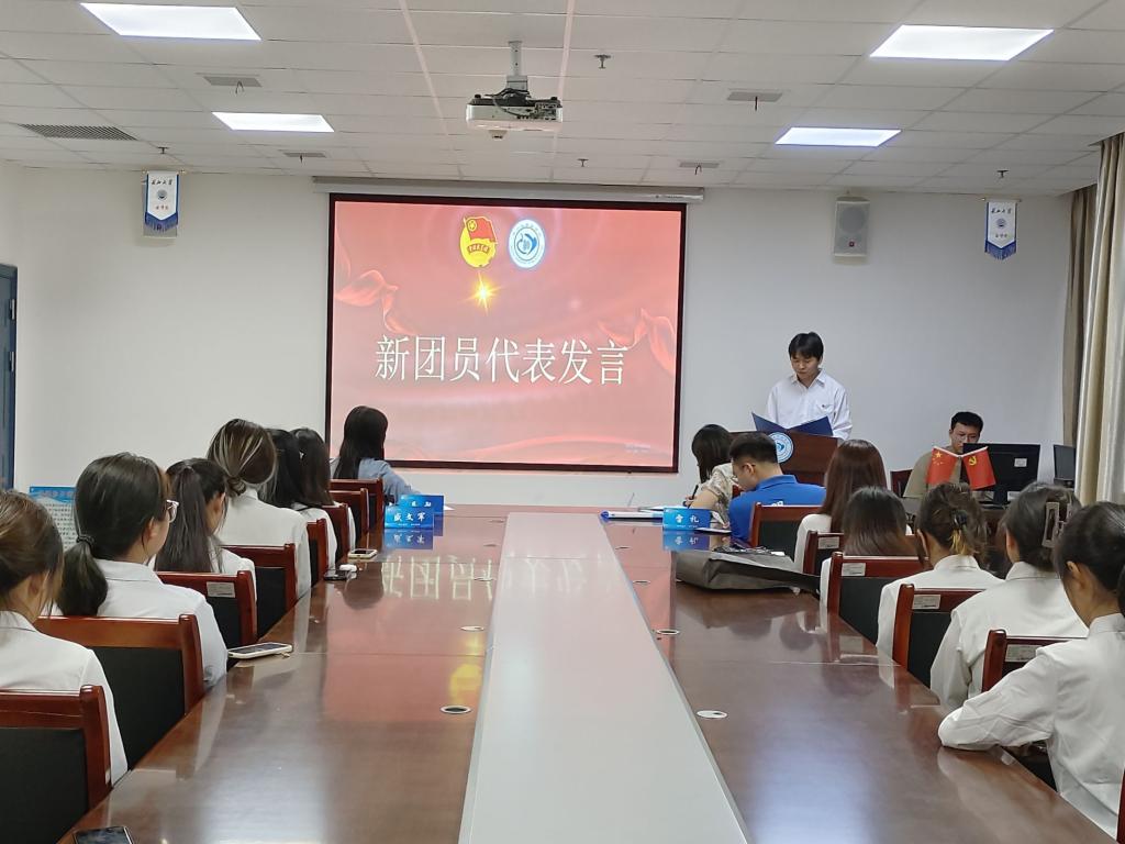入团仪式在庄严的国歌声中拉开帷幕,嘹亮的歌声为入团仪式铺上了火红的底色,也再一次点燃了团员们心中的星火。仪式第二项,主持人程玺霖宣读2024年上半年新发展团员名单,院党委副书记严星老师为新团员颁发团员证和授予团徽。仪式第三项,程玺霖带领新团员进行团员宣誓,引领新团员更加明确自身所肩负的责任和使命。仪式第四项,新团员代表李子杰同学表示今后会按照团员标准严格要求自己,牢记入团誓词。仪式第五项,优秀团员代表黄世威则表达了对新团员的期许,号召新团员明确自身责任担当,努力成为堪当时代重任的新青年。仪式第六项,严书记对新加入共青团组织的同学们表示祝贺,并寄语新团员们进一步学习理论知识,无愧青春时光;响应号召,践行社会主义核心价值观;进一步增强责任担当意识,积极向党组织靠拢,做到“德智体美劳”全面发展,争做中国好青年。
