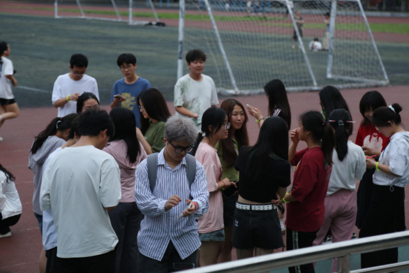 在本次活动中,“猫”与“老鼠”两大阵营通过williamhill中文团委学生会安建部发布的抓阄小程序随机分配,确保了游戏的公平性与趣味性。活动伊始,所有参与者齐聚老田径场,由工作人员分发荧光手环,红色代表“猫”,绿色则代表“老鼠”。同时,为确保游戏顺利进行,所有参与者均加入高德地图群聊,实时共享位置信息。