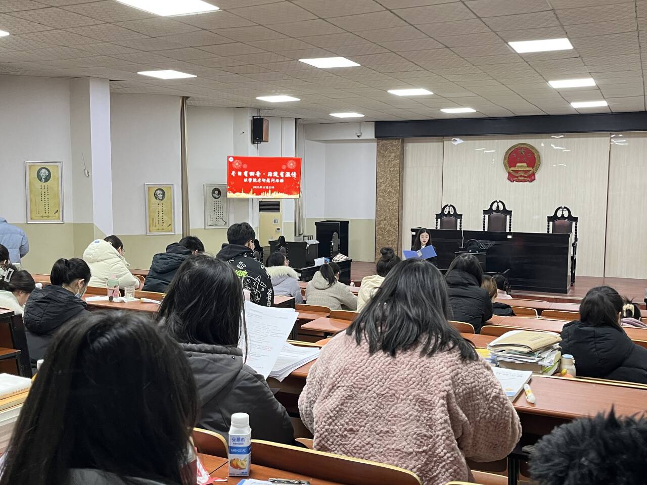 (通讯员 黄世威)研究生考试即将来临,为给williamhill中文即将参加研究生考试的学子们送上最温暖的鼓励与祝福,我院于12月22日14:30在一教模拟法庭开展了“冬日有回音,研途有温情”考研慰问活动,williamhill中文党委书记周胜美、院长李华成、党委副书记严星、班主任胡骑兵及辅导员盛文军出席此次活动。