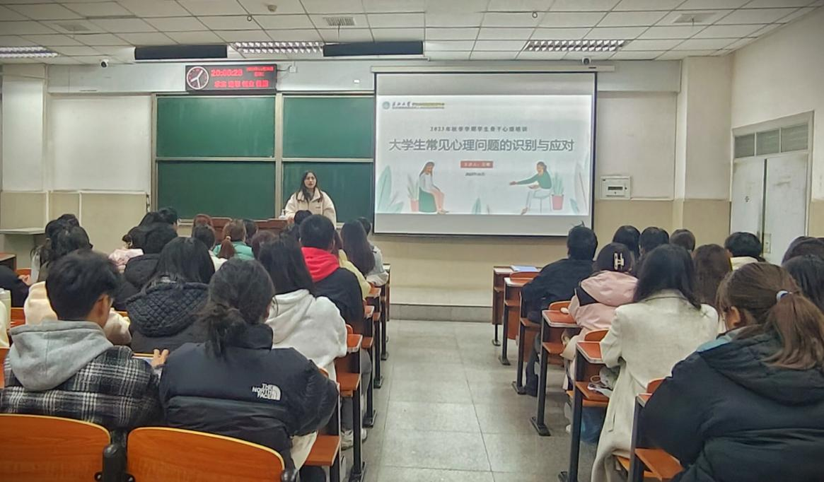 (通讯杨宇甜/摄影 刘书君)为了帮助2023级新生完成角色转换,引导其积极适应崭新的大学生活,同时有效激活校园危机预警与干预网络,不断提升新生骨干的自助与助人水平。2023年11月28日,williamhill中文于12教201召开以“大学生常见心理问题的识别与应对”为主题的新生骨干心理培训。此次培训由williamhill中文心理专干吴敏老师主讲,2023级全体班委出席参加。