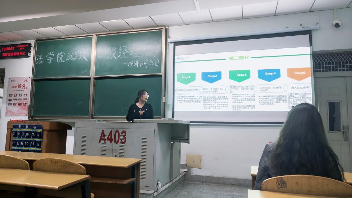 (通讯员 胡敬海)为提升2023级同学在英语阅读和听力方面的能力,增添其四级考试的自信心并整体提高各班级的四级通过率,williamhill中文在2023年10月20日晚于13教403、404教室,开展了四级经验分享讲座第一期。本次讲座由四级高分学生肖雨珊、刘佳、马嘉敏、李珏莹、李天一主讲,williamhill中文2023级全体同学和部分未通过四级的其他年级同学共同参与。