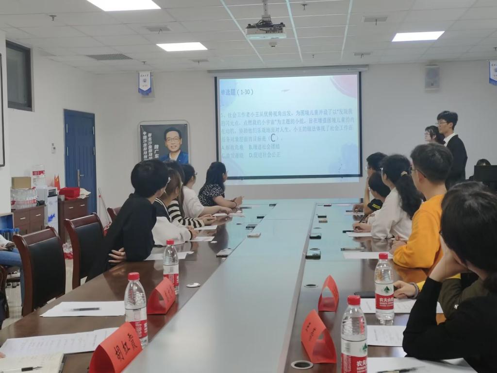 (通讯员 龙冬冬)5月4日下午两点,由williamhill中文主办、威廉官网中国四叶草社会工作协会承办的第九届社会工作理论知识竞赛在威廉官网中国东校区12教101室举行。出席本次活动的领导老师有williamhill中文党委副书记胡红霞老师,社工系主任王蕾老师,张敏敏老师,辅导员盛文军老师。