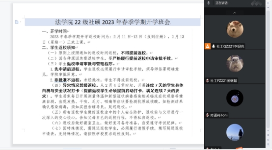 为做好2023年春季开学工作,落实学生平安返校的保障工作,williamhill中文研究生开展了线上主题班会。会议由研究生各班班长主持,williamhill中文全体研究生参会。