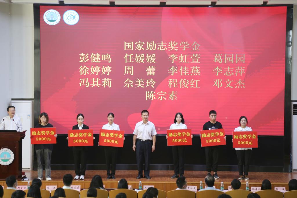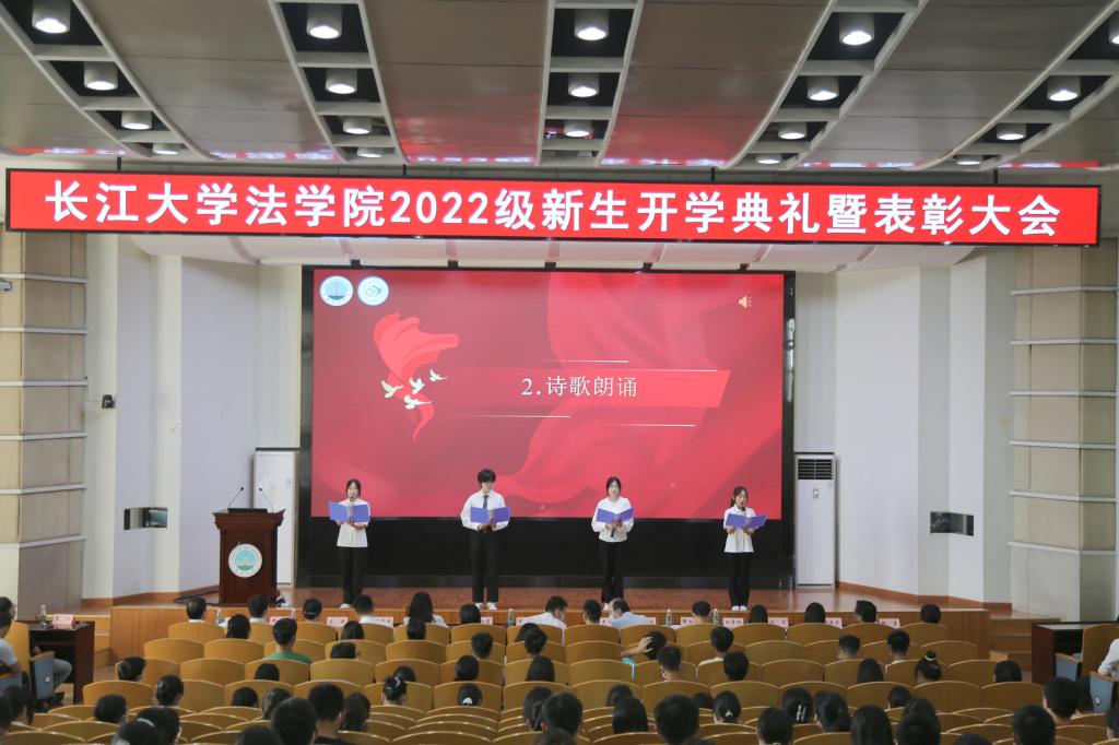 会中,彭泽君老师宣读各项表彰决定,与会领导、老师分别为相关同学颁奖,合影留念。随后本科生新生代表江静、校友代表叶秀进、老生代表赵永琪、研究生新生代表黄采卉及教师代表杨春磊分别进行发言。其中叶秀进先生以视频的方式表达了对两位新生奖学金获得者的祝贺,并结合自身经历,激励法学专业学子,扎实学好专业基础课程,为以后的专业深造、工作打好基础。杨春磊老师鼓励全体同学以立德树人、德法兼修为己任,既要做到仰望星空,同时也要脚踏实地。并期望大家在今后的学习生活中贡献长大智慧、谱写青春华章。