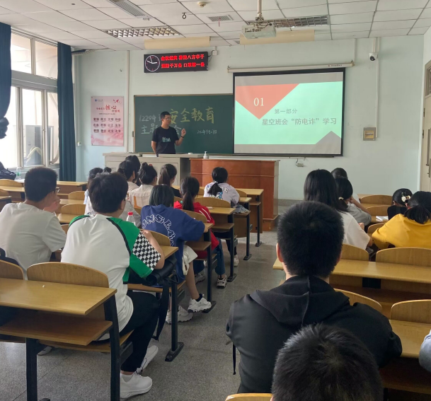 活动期间,各班班长邀请班主任并组织本班同学召开了安全班会,通过主讲人讲解,辅以ppt、安全教育视频的形式,就疫情防控、防电信诈骗、食品安全、防溺水以及消防安全等常见的安全问题展开生动形象的宣传教育,有效地加深了同学们对各类安全问题的认识,帮助同学们树立较高的安全防范意识。安建部工作人员通过活动中随机抽查班会情况,活动后收集各班的会议记录的方式,确保了活动切实有效开展。