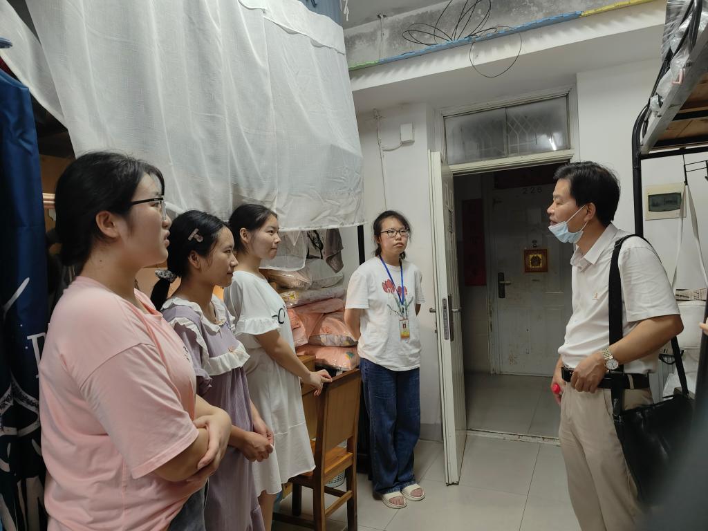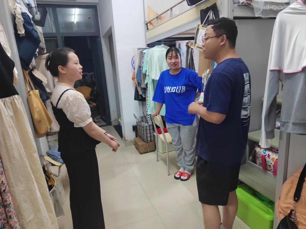 (通讯员 何钰滢)育人在心,情暖到寝。8月4日晚7时,学院副院长彭泽君、辅导员盛文军、雷礼集中走访了williamhill中文本科生及研究生宿舍,对暑期留校学生的思想状况和学习生活情况进行了关心。