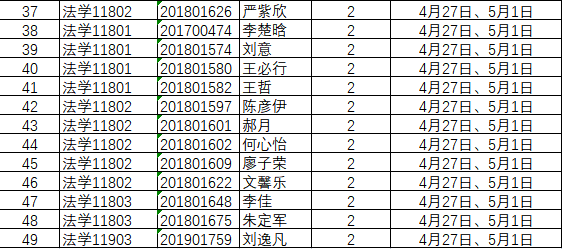 根据学校要求,2022年4月27日、5月1日(第十周)组织全体本科生进行每日“辅导猫”打卡。经分管辅导员、学工助理、班干部多次提醒,仍有49名同学未在规定时间内完成打卡,具体未打卡次数及日期如下:(表格显示)