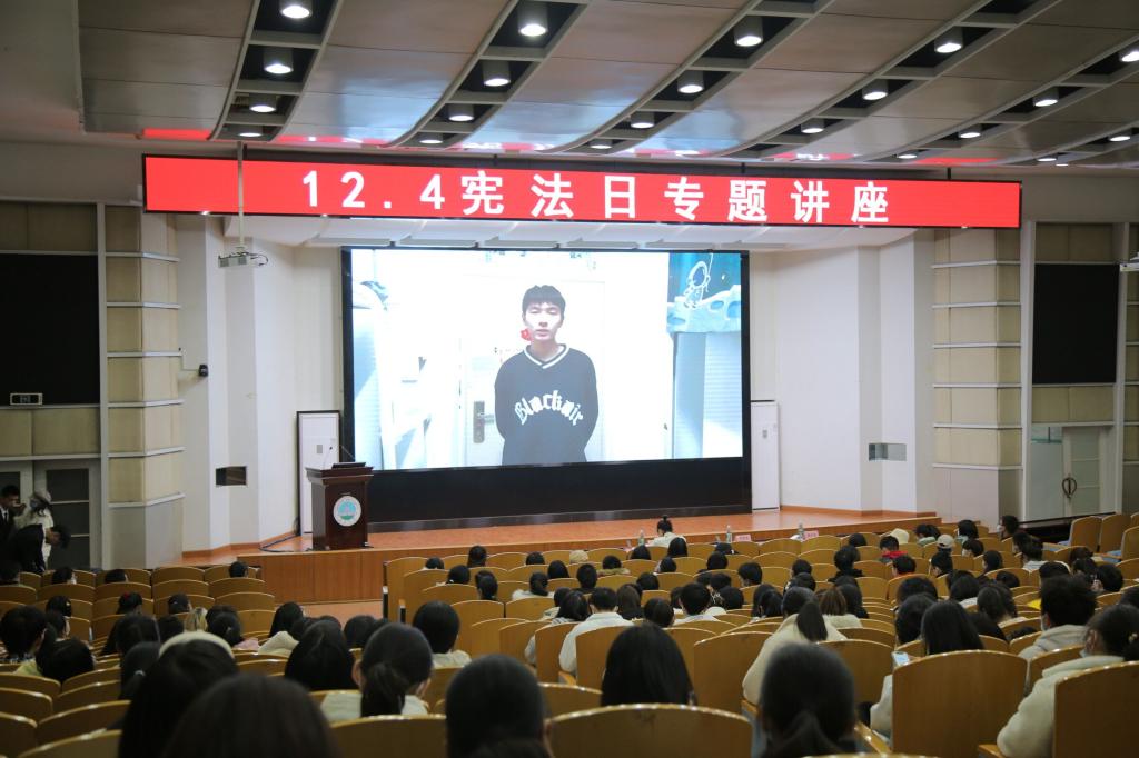 在活动现场,首先播放关于宣传宪法知识,弘扬宪法精神,倡导网络法治等的宣传视频和情景剧,让在座的师生对宪法有了初步了解。