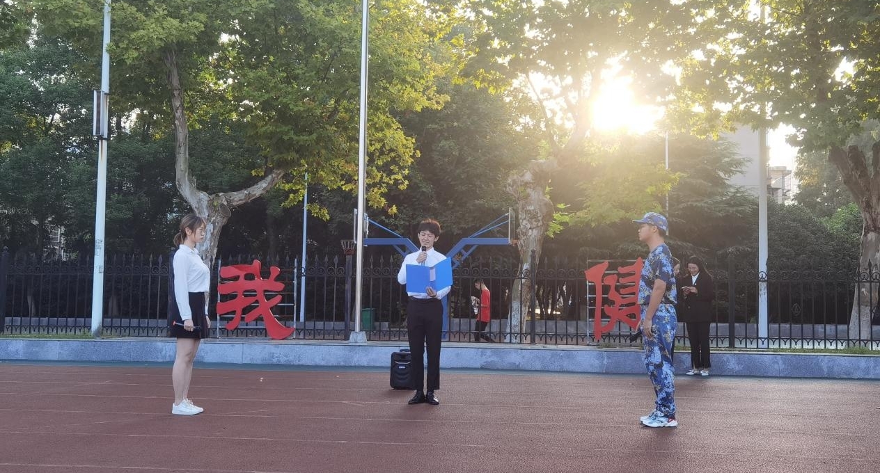 法学类12103班韩畅作为新生代表做国旗下讲话,他表达了对大学生活的憧憬,对大学四年作出了规划,并号召同学们要敢于创新、乐于纳新、勇于维新,用实际行动坚守初心与梦想!