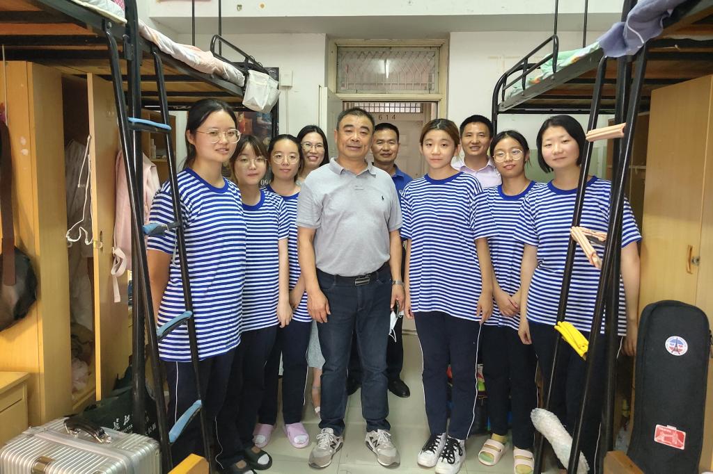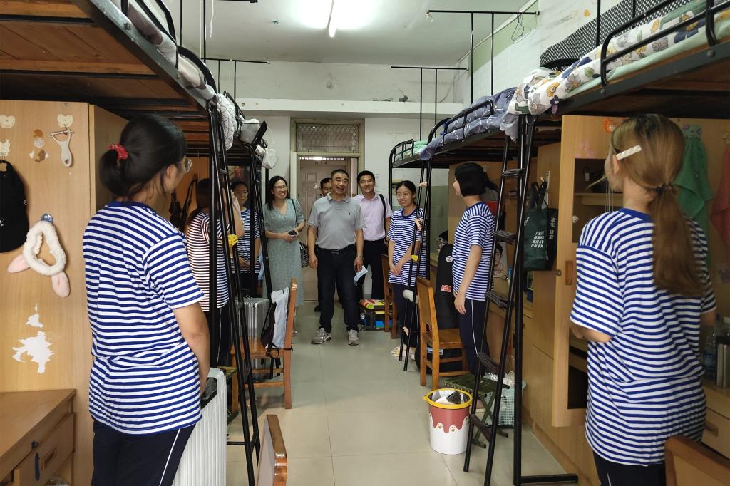 周校长对新生的到来表达了热烈的欢迎和亲切的问候。期间,周校长耐心询问同学们寝室的基本情况以及到校感受,与学生亲切交谈,听取学生对寝室环境方面的意见,对寝室的安全卫生情况表示肯定。他指出,寝室工作是学生工作的重中之重,一定要站在“为党育人、为国育才”的高度,坚持以生为本,为学生创造安全、稳定、和谐的的寝室环境,为学生解除学习生活的后顾之忧。