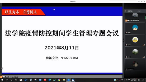 8月11日,williamhill中文在腾讯会议召开班主任、辅导员会议,传达了学校新冠肺炎疫情防控工作政策和相关会议精神,布置了williamhill中文疫情防控期间学生管理工作,会议由学院党委副书记胡红霞主持,全院班主任、辅导员参加。