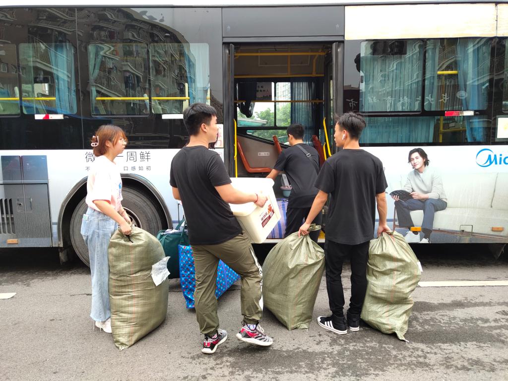 学院前期制定了详细的搬迁工作方案,为每位同学免费发放2个打包带,租用16辆公交车,还准备了矿泉水、藿香正气水等物品。2020级年级辅导员周晓峰专门召开了班会和负责人会议,讲解搬迁的详细流程,强调搬迁过程中的注意事项。搬迁前一天晚上,辅导员周晓峰、盛文军老师逐一走访2020级56间学生宿舍,查看同学们行李打包的情况,再次强调人身安全、财产安全等。