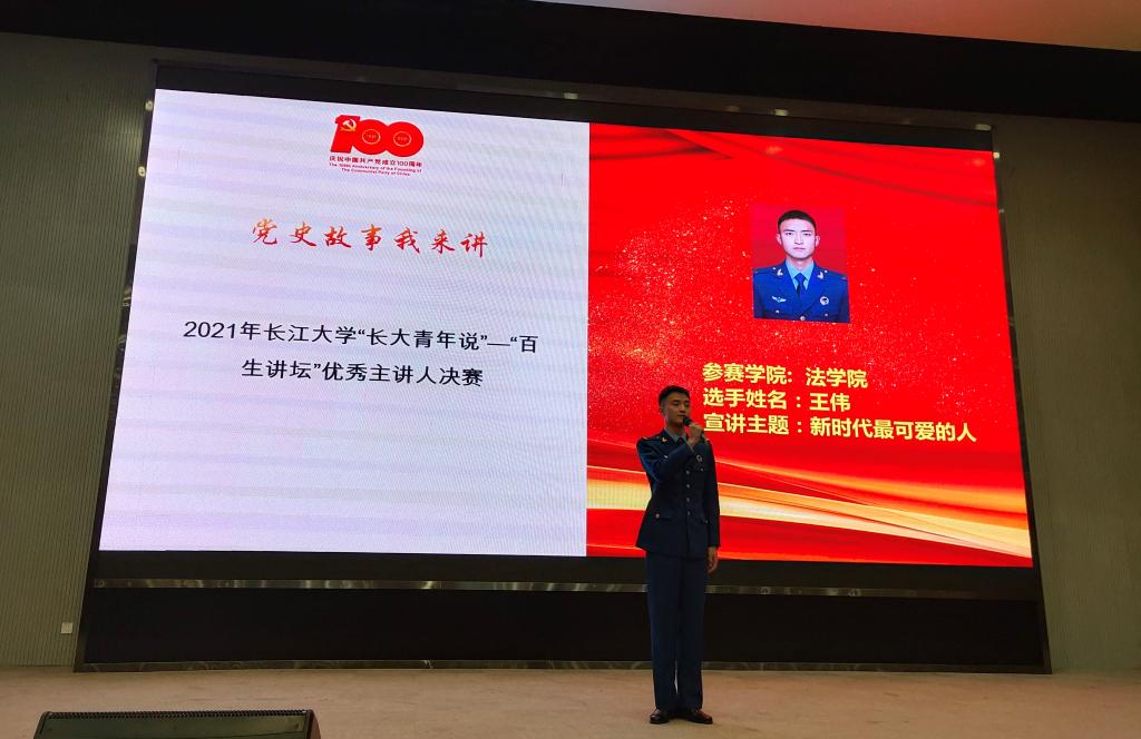 由大学生艺术团带来的开场舞蹈《芒种》,瞬间将现场的气氛点燃。接下来,由学院领导和老师为在本学期举办的百生讲坛暨“党史故事我来讲”、寝室文化节、“五四”系列活动、专业基本功大赛等活动中获奖的同学们一一颁奖。在颁奖过程中,被推选出的典型作品上台进行了展示。法学类32004班胡智豪同学进行了《五四百年青春梦,红色薪火永相传》主题演讲;法学类32005班王晓雅、张砡濛和秦一凡同学朗诵了诗歌《不朽的军魂》;南苑19A417,作为优秀寝室代表进行了寝室文化展示。随后,法学11901班王伟同学带来“长大青年说”——“百生讲坛”优秀主讲人示范宣讲,他以《新时代最可爱的人》为主题,结合自己部队服役的经历讲解新时代的抗美援朝精神,将现场的气氛推向了高潮。听了王伟的讲述,不少同学都流下了感动的泪水。