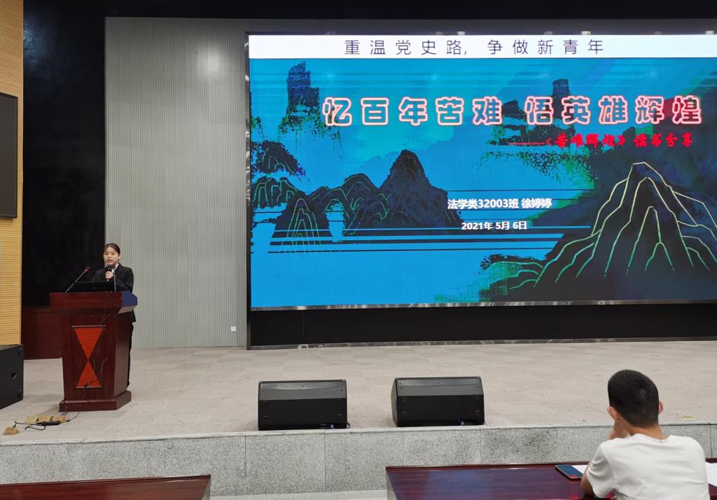 (通许员 陈婉莹)为弘扬“爱国,进步,民主,科学”的五四精神,5月13日下午4时学院在西校区农科大楼1058报告厅开展“重温党史路,争做新青年”朗诵比赛和读书分享会,辅导员周晓峰和盛文军参加本次活动。