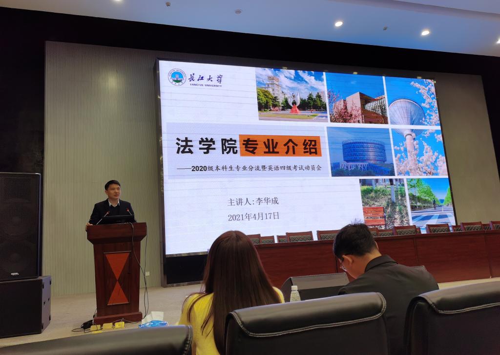 会议伊始,李华成院长向同学们介绍了我院法学和社会工作两个本科专业的课程设置、办学资源、升学就业等情况。