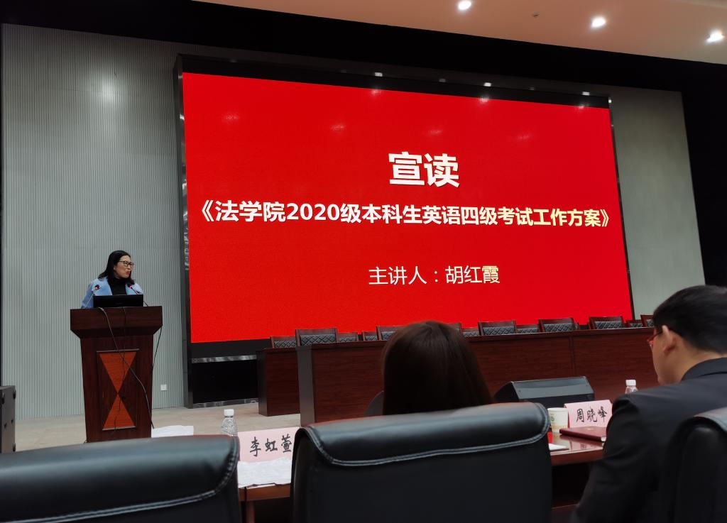接下来,党委副书记胡红霞宣读了《williamhill中文2020级本科生英语四级推进工作方案》,讲解了我院英语四级通过率目标、工作方案和奖励措施等。