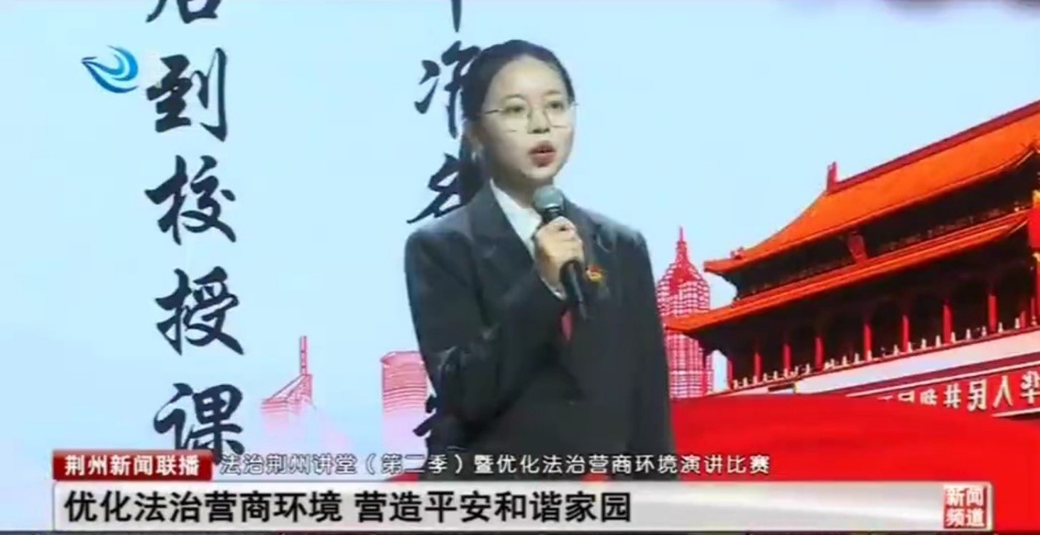 本次演讲比赛有来自荆州市检察院、沙市区法院、江陵县公安局、共青团荆州市委和williamhill中文等单位的11名主讲人参赛。徐程同学在《传承法治精神,奉献青春力量》主题演讲中展示了我院在深化平安法治荆州建设,服务和优化荆州法治营商环境中所做的积极工作;她宣传了我院党员教师胡承武、唐飞等的先进事迹,还讲述了我院学子在普法志愿服务等方面的青春故事。
