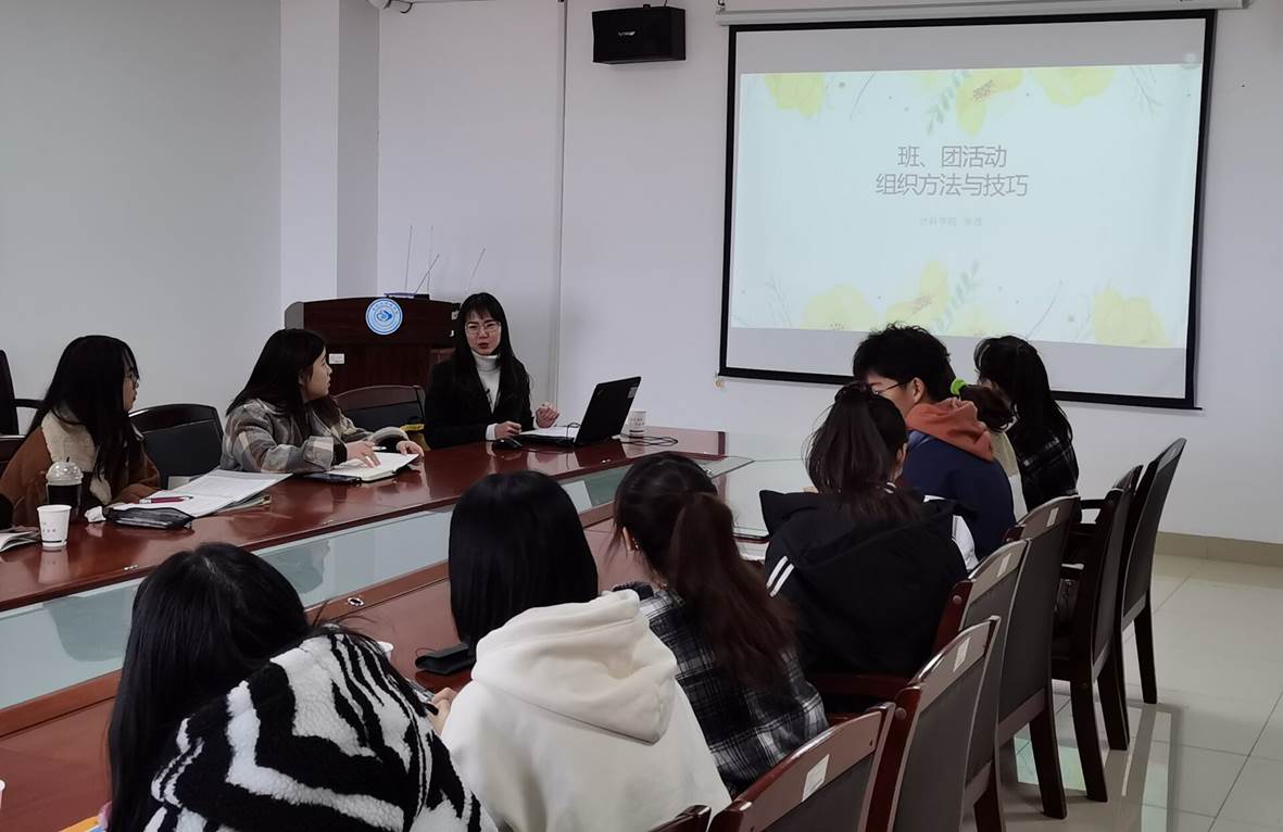 【通讯员:吴诚】12月5日下午两点,我院特邀计算机科学学院分团委书记张茜老师和学院党委书记周胜美于文科大楼1110会议室开展2020年学生干部初级培训班系列讲座。辅导员周晓峰及初干班全体成员参加。
