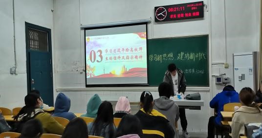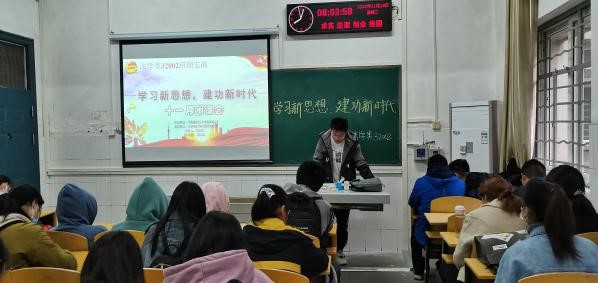 (通讯员:李汝馨)十一月十八日上午,法学类32002班在西校区2教104召开了以“学习新思想,建功新时代”为主题的团课班会,本次会议由法学类32002班团支部承办,由班长周文双作为会议主讲人。在同学们大声歌唱中国共青团团歌的歌声中,本次团课会正式拉开序幕。会议分为四项内容。