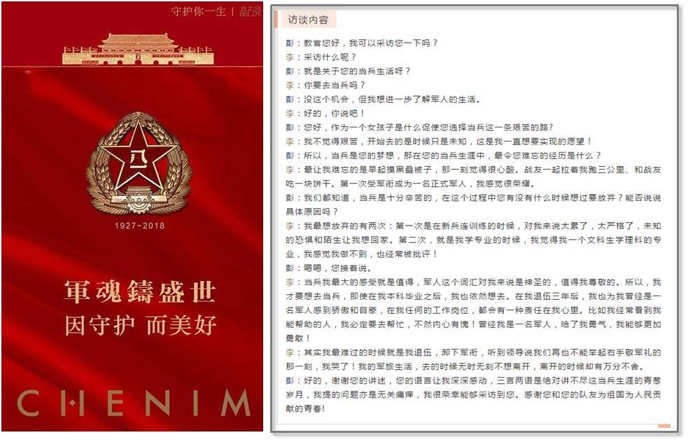 图为志愿者访谈毕业于威廉官网中国的优秀士兵,共述军旅生活。