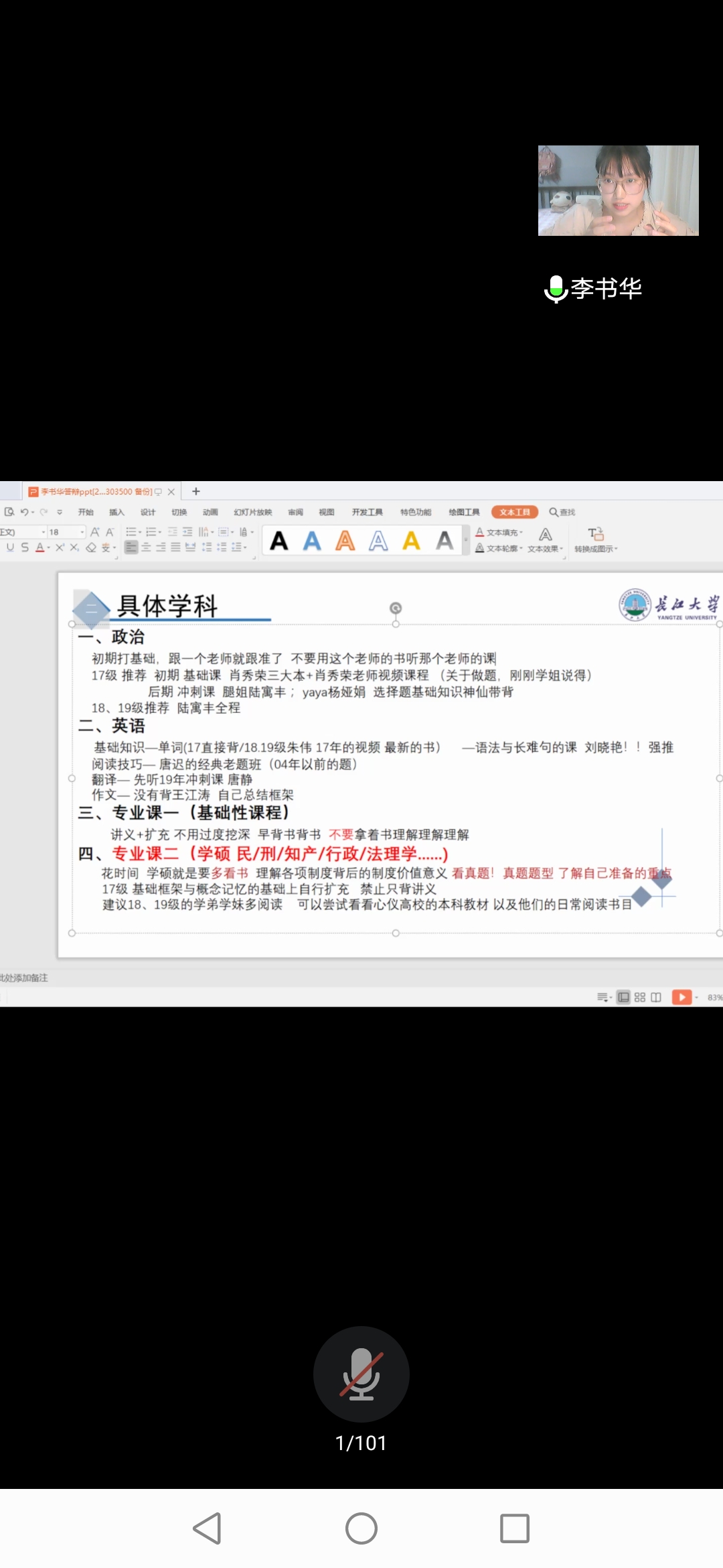 为充分吸取2016级学姐的考研经验,提高williamhill中文的整体考研率,williamhill中文于7月5日晚上7点30分开展了线上考研分享会,此次会议邀请了2016级李书华、程凯琦、程文赟三位学姐进行考研经验分享,此次分享会由舒勇担任主持,williamhill中文学工办主任杨琳丽及williamhill中文全体本科同学参与此次会议。