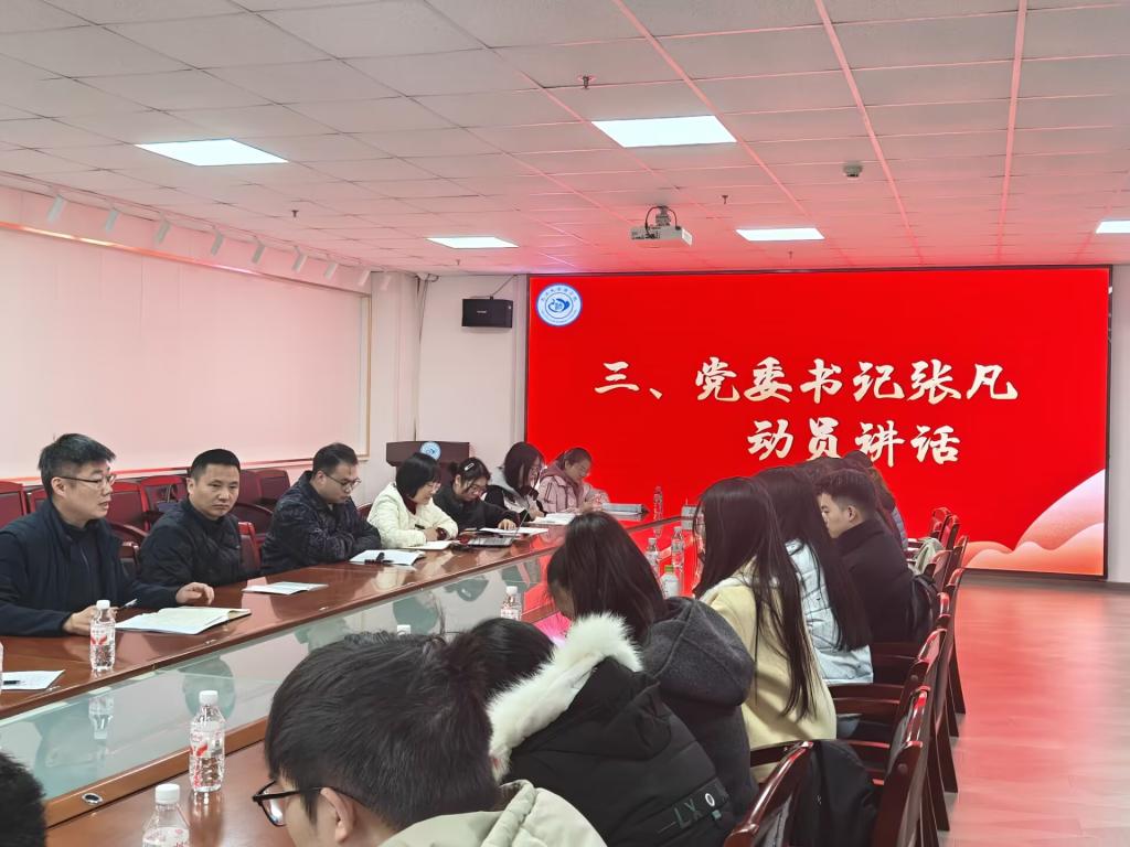 学生代表发言环节。刘佳豪、肖思琦同学分别分享了自己的备考历程,表示,备考路上虽有压力与迷茫,但学院提供的良好备考环境、辅导员的悉心关怀以及同窗间的相互鼓励,让大家始终充满前行的力量。“图书馆的专属备考座位、导师的专业答疑、学院组织的心理疏导活动,每一份支持都让我们倍感温暖。”他们代表全体考研学子,向学院和老师们的关心与付出表示衷心感谢,并承诺将牢记诚信应考准则,全力以赴冲刺考试。