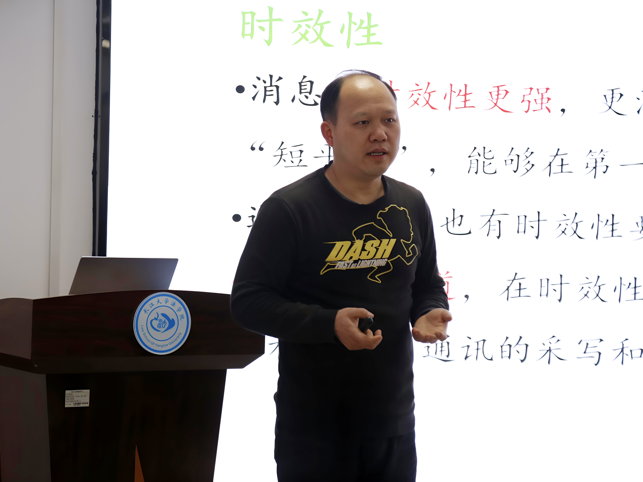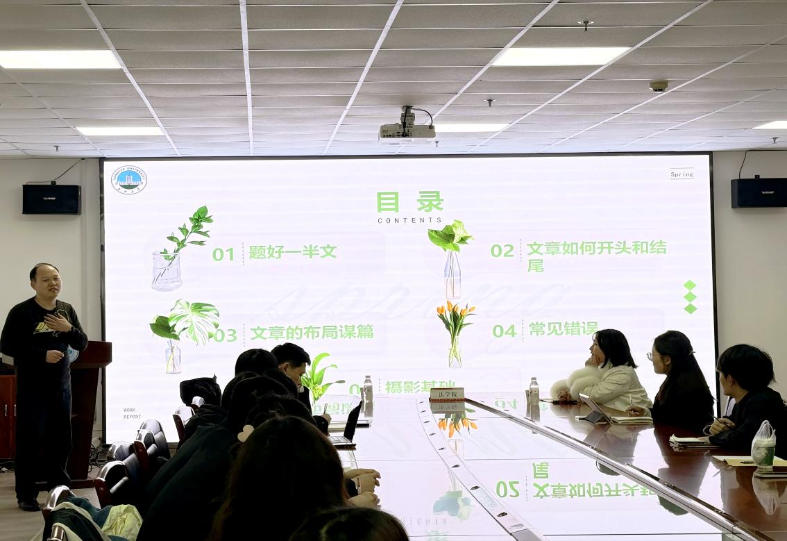 在新闻写作板块,李老师全流程拆解新闻创作核心要领。他提出“准确为基、创新为要、善借势赋能”的创作准则,详解多场景标题拟写技巧;以“一个好的开头是文章成功的一半”点明开篇的关键作用,梳理了多类活动场景的开篇写作范式;以“排雷”找错的形式,带领同学们深入剖析真实案例,在直观对比中找准问题、明晰思路。