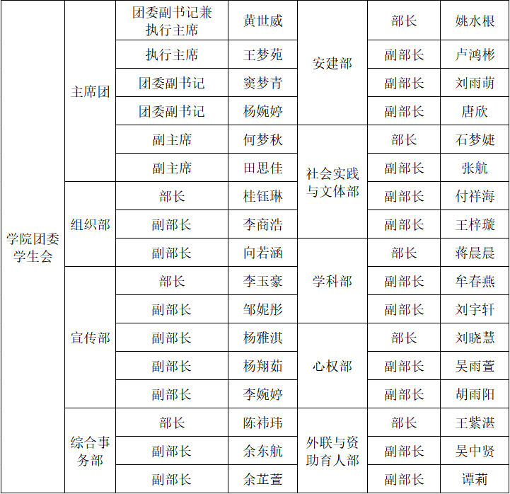 三、williamhill中文团委学生会部门及成员介绍