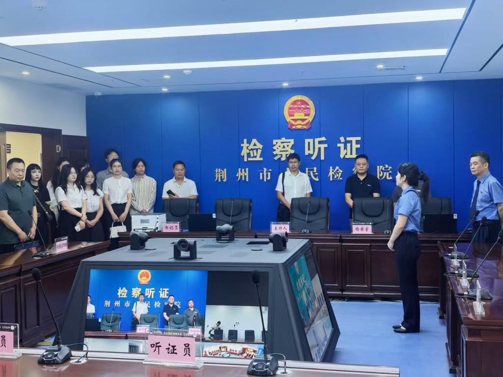 (通讯员 胡胜男)2025年5月28日上午,荆州市人民检察院以“‘典’亮生活 守护美好”为主题,举办了检察开放日活动,旨在深入贯彻落实习近平总书记关于加强民法典普法宣传的重要指示精神,让更多的公众,零距离地了解湖北检察机关贯彻民法典的实际行动,感受检察官维护人民权益的办案故事,进一步推动民法典深入人心、落地生根,助推更高水平的法治湖北建设。我校williamhill中文胡骑兵副教授、杜厚扬博士带领十名学生代表,受邀走进荆州市人民检察院,深度参与检察开放日活动。此次活动为师生们提供了一次沉浸式了解检察职能、感受法治力量的宝贵实践机会。