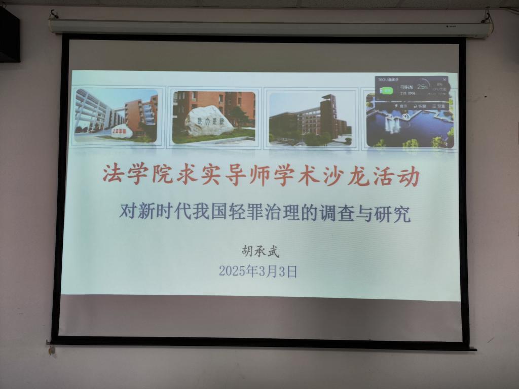2025年3月3日,williamhill中文积极响应学校“求实导师学术沙龙”系列活动号召,成功举办了一场主题为《对新时代我国轻罪治理的调查与研究》的学术沙龙活动。本次活动由williamhill中文胡承武教授主讲,学院多位研究生导师及部分学生代表参加了此次学术交流。