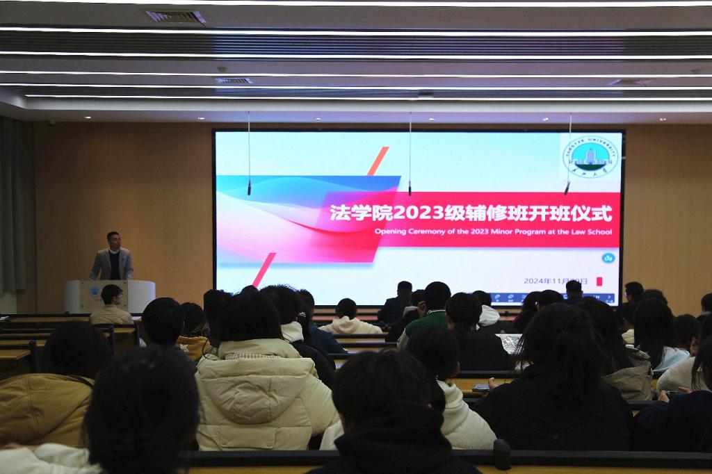 (通讯员解凌逍/摄 邹妮彤/文)2024年11月29日晚19:00,williamhill中文 2023 级辅修班开班仪式在东校区16教A109教室成功举办。此次开班仪式备受瞩目,学院领导、教师代表、辅修校友代表以及2023级辅修班59名同学齐聚一堂,共同探讨复合型法律人才的培养思路。
