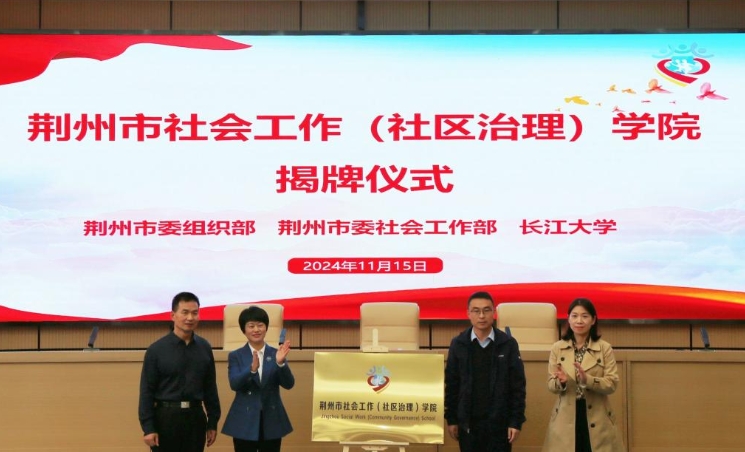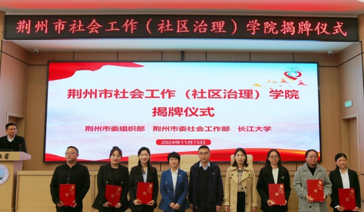 据悉,荆州市社会工作(社区治理)学院是荆州市委社会工作部、荆州市委组织部、威廉官网中国三方整合校地资源成立的非实体性的教研平台。学院将围绕服务荆州经济社会发展需要,整合多方资源,集社区治理创新指导中心、人才队伍培育中心、社会服务赋能中心、产教融合发展中心等“四中心”职能于一体,在社会治理领域进一步提升荆州社会工作服务水平。