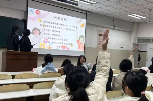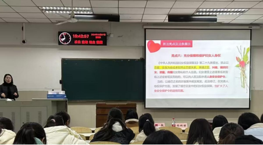 杨老师深入解读了新法的十大亮点。从政治权利保障到劳动权益维护,从文化教育权益到财产权益保护,每一个亮点都体现了国家对妇女权益的高度重视和坚定维护。她鼓励在场的女大学生们要深入了解这些法律条款,学会运用法律武器来维护自己的合法权益。