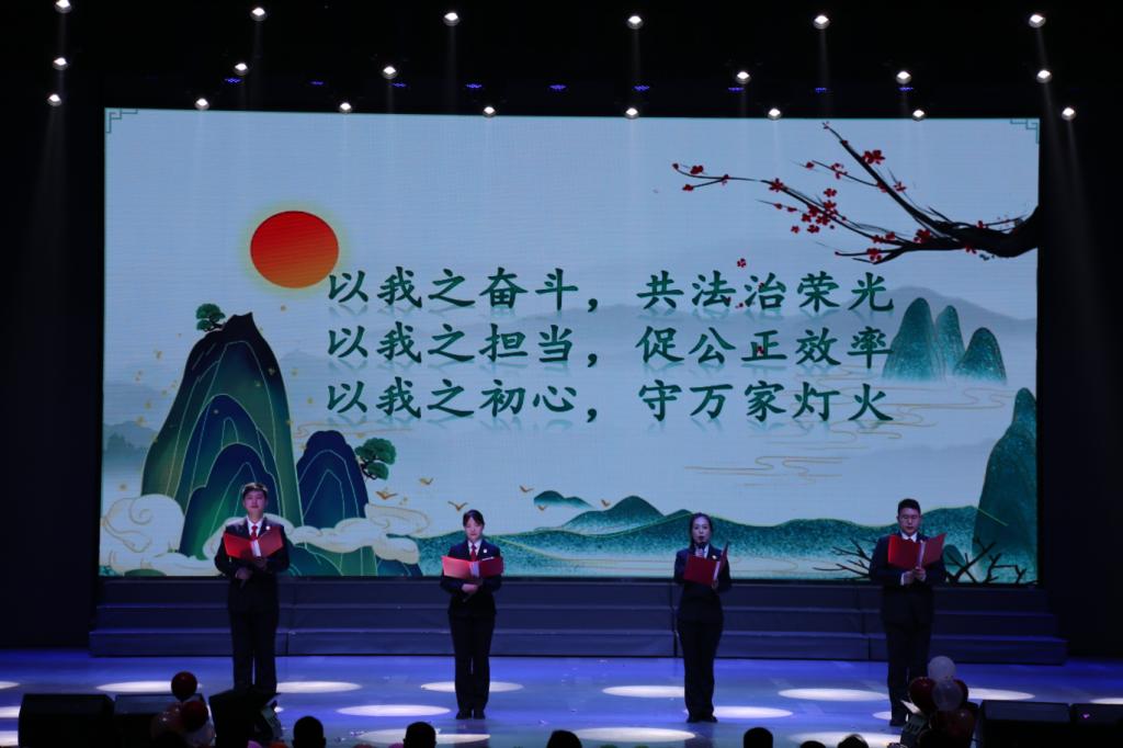 石首市检察院的话剧《检察“良方”护航老字号》,展现了以检察建议的形式为民营经济保驾护航。荆州市中级人民法院的朗诵《天平上的松》,带领观众一起走进抗癌法官杜坚松的故事,共同学习其生命不息、奋斗不止的顽强精神。沙市区检察院的诗朗诵《法治青春,昂扬共进》,展示了他们朝气蓬勃、蓄势待发的精神面貌,誓要将青春融进法治建设的浪潮中。公安县检察院的公安说鼓子《深情的土鸡蛋》,为在场观众展现了人民群众对检察机关执法为民、维护稳定的赞美。