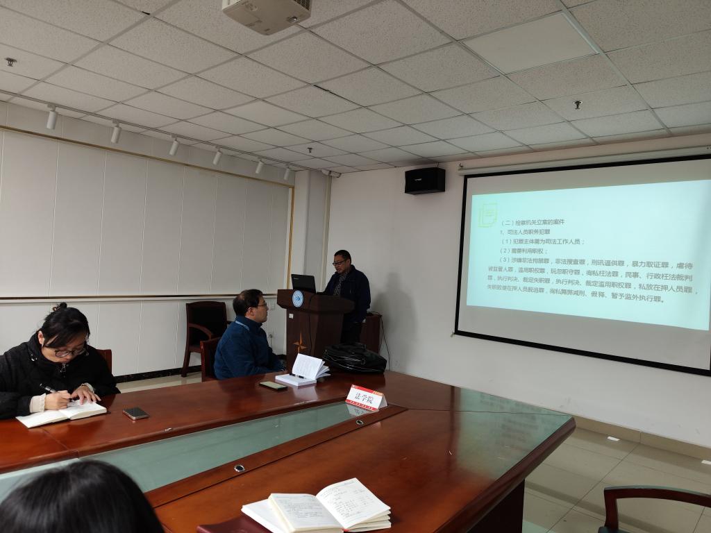 下半场,硕士生导师胡承武教授从制定监察法的背景和过程、制定监察法的重大意义、监察法的主要内容、学习监察法的几点感受等方面,全方位、多角度、立体式地解读了监察法,有数据、有案例,既传达了党中央的精神,又谈了自身学习体会,既解读了法律条款背后的立法目的,又提出了贯彻落实的意见建议。
