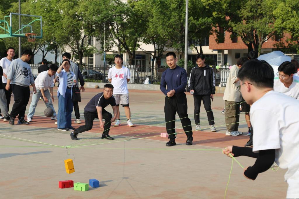 活动由辅导员盛文军致开幕词,鼓励各班级同学积极参加项目活动,展现williamhill中文学子积极向上的风貌。各项比赛依次进行,伴随着激昂的音乐和加油呐喊声,整个赛场逐渐沸腾起来。在撕名牌、抖乒乓球、大排球等项目中,各参赛队员紧密配合,展现了顽强拼搏的意志。在合力建塔中各参赛队伍展现了极高的团结协作能力。在拔河比赛中,场上参赛队员奋力拼搏,团结一心,心往一处想,劲往一处使。现场激烈的比赛将整个活动氛围推到了高潮!